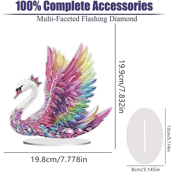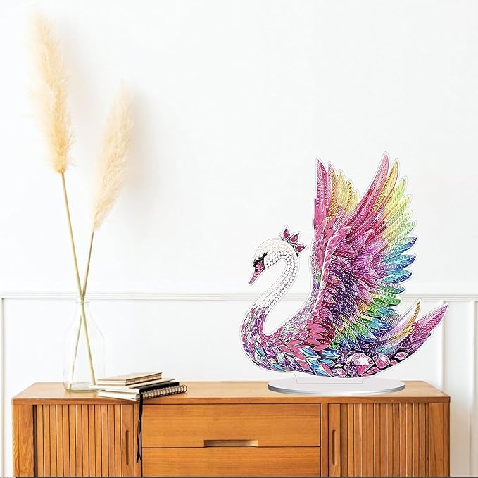 Diamond Painting Kits for Adults Beginners, 5D Full Drill Swan Crystal Art Desktop Ornament, DIY Single Sided Home Office Desk Decor, Creative Craft Gift Set with Tools