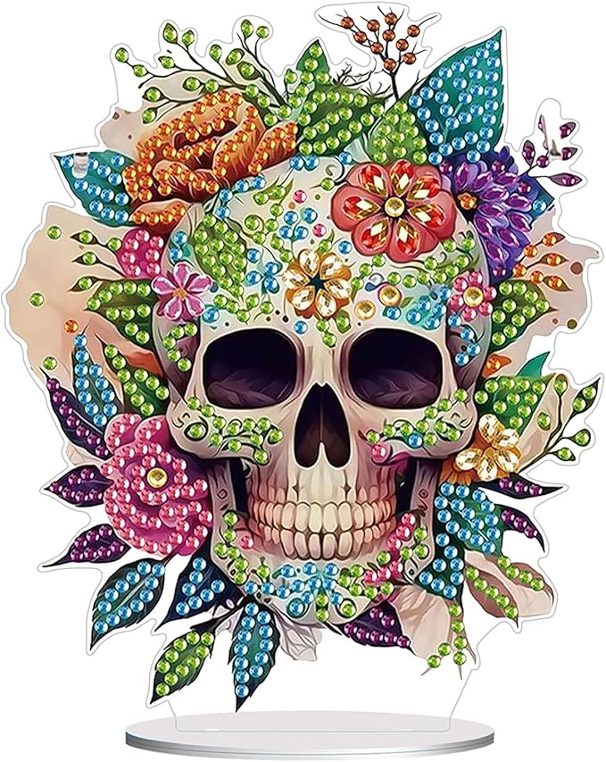 Diamond Painting Kits for Adults Beginners, 5D Full Drill Skull Crystal Art Desktop Ornament, DIY Single Sided Home Office Desk Decor, Creative Craft Gift Set with Tools