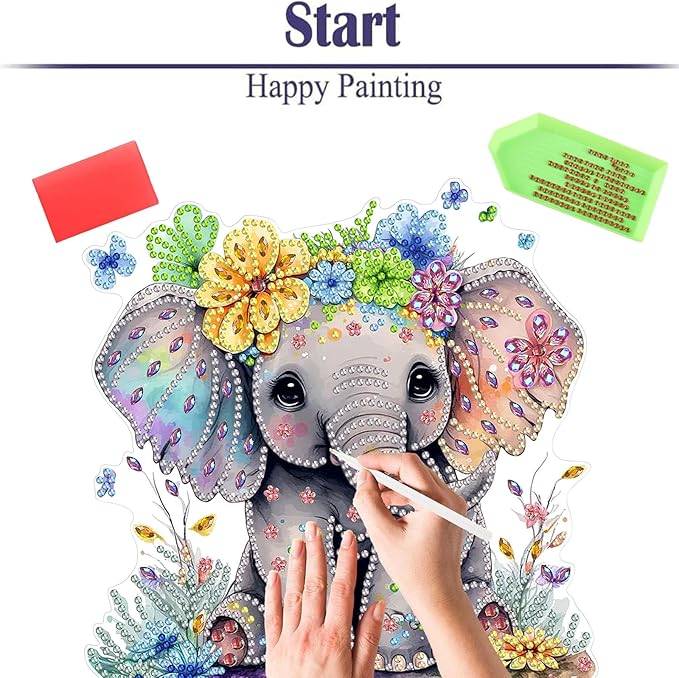 Diamond Painting Kits for Adults Beginners, 5D Full Drill Elephant Crystal Art Desktop Ornament, DIY Single Sided Home Office Desk Decor, Creative Craft Gift Set with Tools