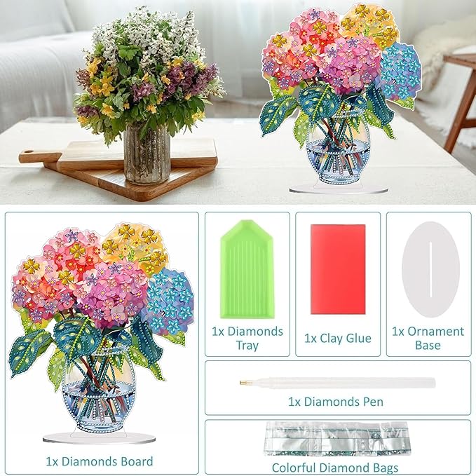 Diamond Painting Kits for Adults Beginners, 5D Full Drill Flowers Crystal Art Desktop Ornament, DIY Single Sided Home Office Desk Decor, Creative Craft Gift Set with Tools