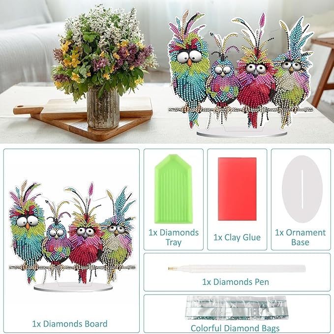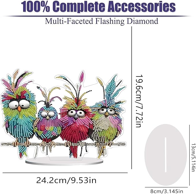 Diamond Painting Kits for Adults Beginners, 5D Full Drill Birds Crystal Art Desktop Ornament, DIY Single Sided Home Office Desk Decor, Creative Craft Gift Set with Tools