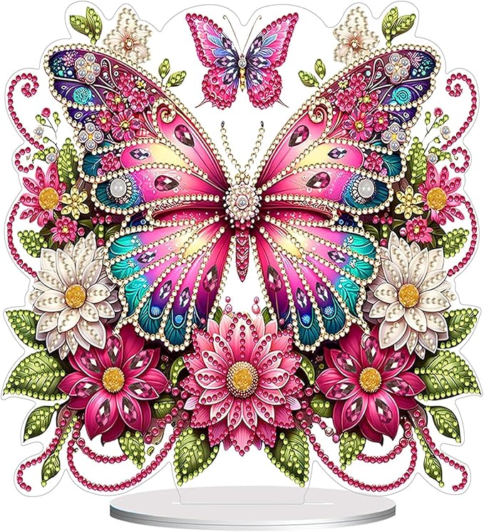 Diamond Painting Kits for Adults Beginners, 5D Full Drill Flowers and Butterfly Crystal Art Desktop Ornament, DIY Single Sided Home Office Desk Decor, Creative Craft Gift Set with Tools