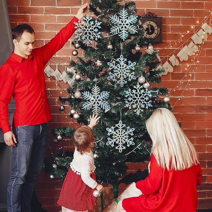 - Easy to Hang & Use:Each giant snowflake ornament has a hole or hollow design at the top for easy hanging with the string provided. Come and hang these glitter snowflakes on your Christmas trees, walls, ceilings, windows, fireplaces, porches, doors, and more to add sparkle to your winter home decorations