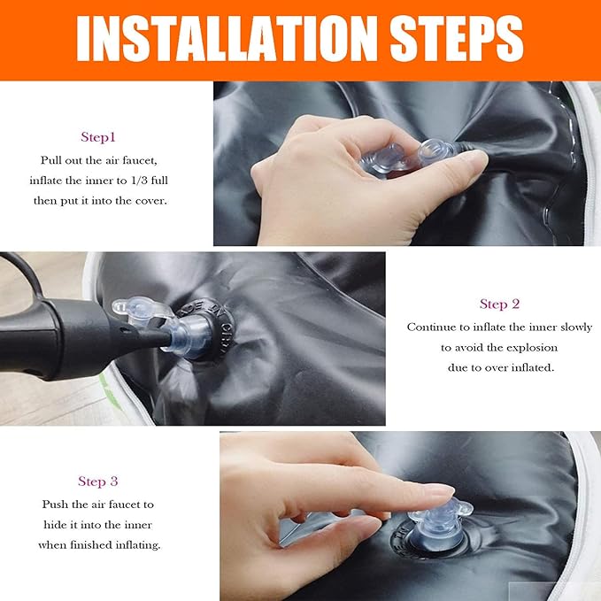 - Durable Outdoor Material: Inflatable Ottoman Cover Made From Durable, Waterproof Material That Can Withstand Exposure To All Weather. Fade-Resistant Keep Its Original Color And Pattern Even If Exposed To The Direct Sunlight For Over 500 Hours. The Black Inner Made Of Waterproof Thick Pvc Fabric That Can Bear Up 300 Lbs.Very Easy To Clean And Maintain.