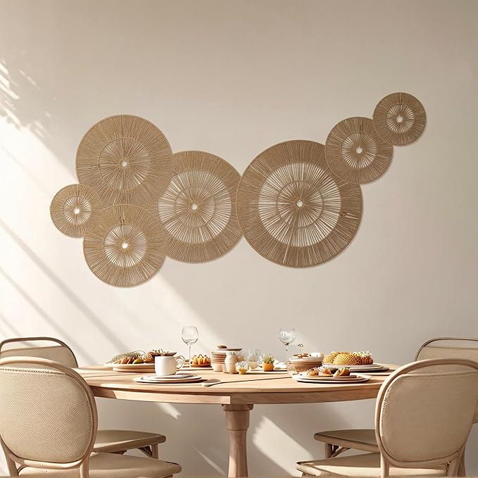 - 7-Piece Multi-Size Set: This boho wall decor set has 7 basket with different sizes (7", 7", 9", 11", 13", 15", 17") that creative versatile wall arrangements, you can displayed together or individually. Small sizes fill corners, large sizes create focal points, effortlessly adding depth to any space