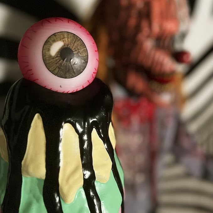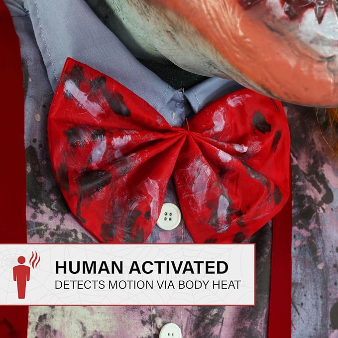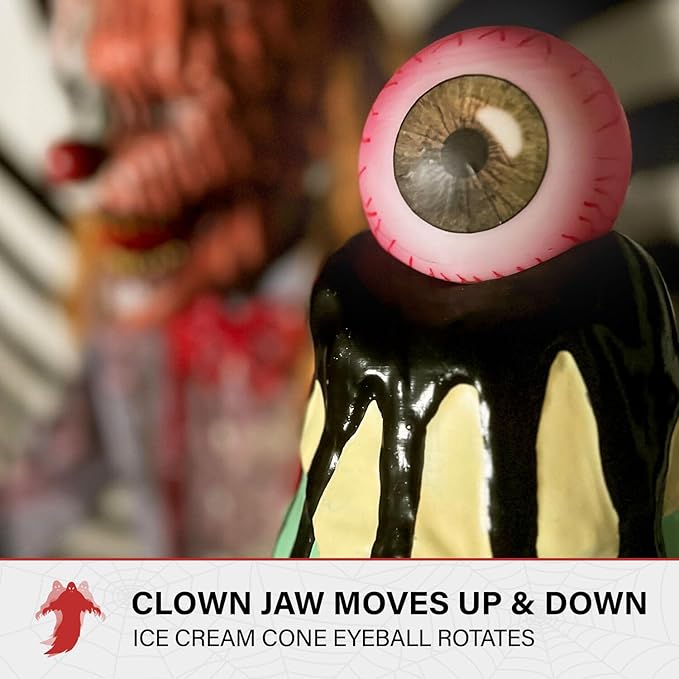 Haunted Hill Farm 6.5-Ft Animatronic I Scream Clown by Tekky, Halloween Animatronic, Creepy Party Decor, Indoor & Covered Outdoor Spooky Party Decoration Motion-Activated Lights & Sound, LifeSize