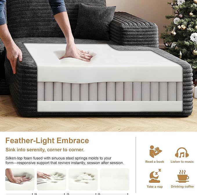 136" Sectional Couches for Living Room Modern Modular Sofa with L-Shape Couchs Upholstered Boneless Couch Deep Seat Sectional Couch with Chaise (Black, Right Facing Chaise+3Seaters)