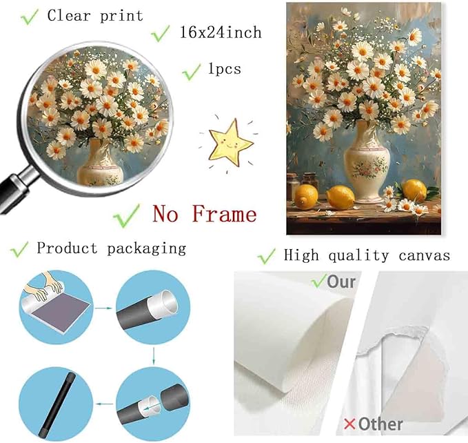 - 1.Canvas wall art specifications:Size:16X24inch,frameless,high-definition canvas wall art prints,printing pictures on canvas,using high-quality environmentally friendly ink,not easy to fade. The colors are beautiful and shiny,high-definition Giclee modern canvas print artwork.
