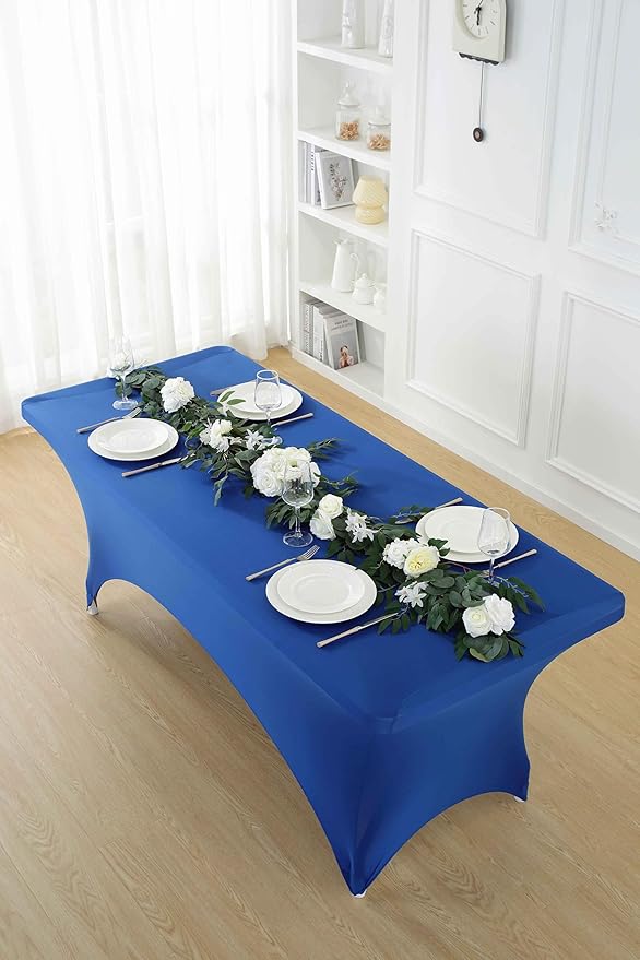 Craft And Party 2 Pack 8ft Royal Blue Spandex Tablecloth – Fitted Stretch Cover – Universal Fit for Folding Tables – Wrinkle-Free, Washable – Ideal for Parties, Weddings, Events