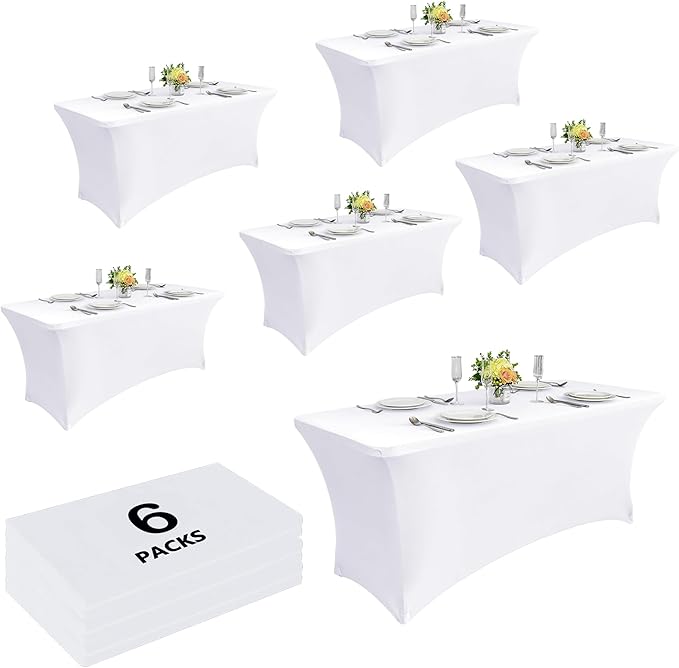 Craft And Party 6 Pack 6ft White Spandex Tablecloth – Fitted Stretch Cover – Universal Fit for Folding Tables – Wrinkle-Free, Washable – Ideal for Parties, Weddings, Events