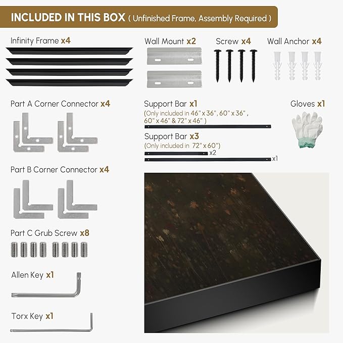- Assembly Required: The artwork comes with the frame components unassembled. Don¡¯t worry - setup is straightforward and tool-friendly. For best results and accurate alignment, we recommend two people to ensure a smooth assembly and a stable, secure wall mount.