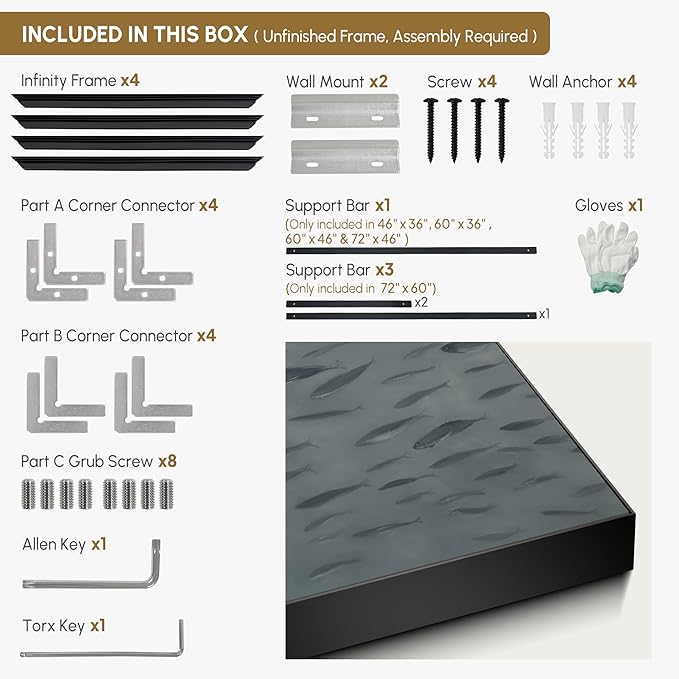- Assembly Required: The artwork comes with the frame components unassembled. Don¡¯t worry - setup is straightforward and tool-friendly. For best results and accurate alignment, we recommend two people to ensure a smooth assembly and a stable, secure wall mount.