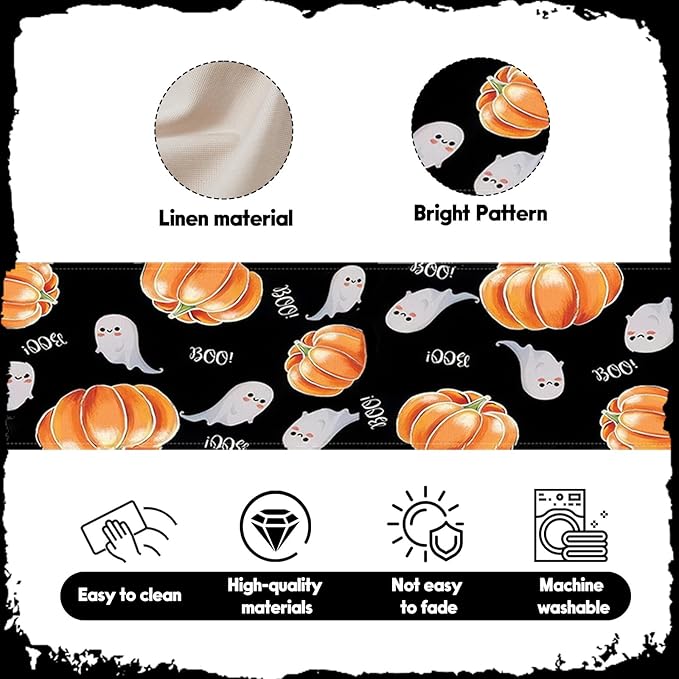 - Package Content: Includes 1 Halloween table runner (13x36 inches), printed with ghost and pumpkin patterns and classic Halloween elements, instantly turning your dining table into the focus of the holiday