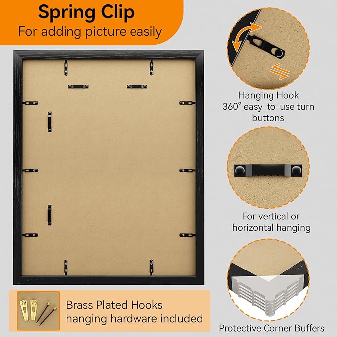 - VERSATILE DISPLAY: Sturdy backboard and versatile hooks allow for horizontal or vertical placement,it creates a cozy atmosphere. Our natural oak poster frames to display your pictures, posters, diplomas and crafts for a stylish home decor.