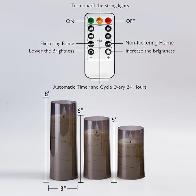 - Convenient Remote Options: Easily Turn ON/OFF, individually control the string light switch, and adjust the lighting mode and brightness. Set the 2H/4H/6H/8H timer then the remote candles will automatically work every day saving you time and battery energy.