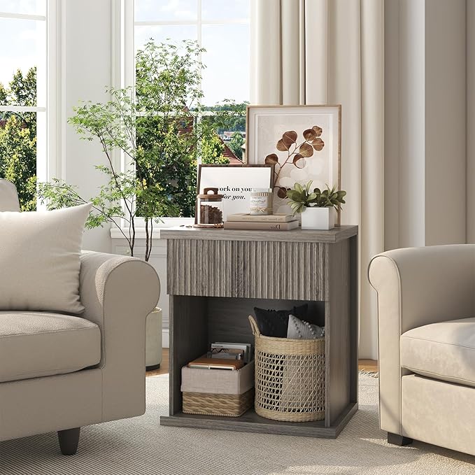 - Dual-function Storage: smooth-gliding drawer can storage jewelry, medications and so on for quick-access essentials, and open shelf can display books, devices, bedside lamp. You can store your items according to your needs on this bedside table with drawer.