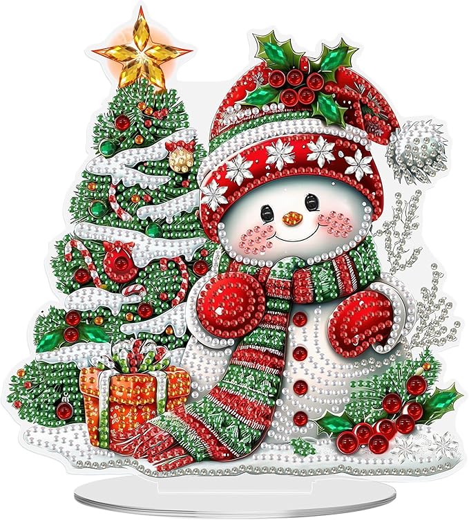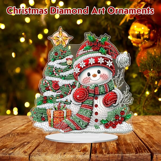 MEIYUDA Christmas Diamond Art Tabletop Kits, Christmas Tree and Snowman Diamond Art Painting Desktop Ornaments for Adult, DIY Special Shaped Crystal Desk Placement Ornament for Home Decor