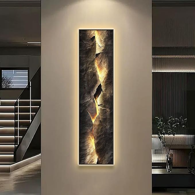 - Create a Glowing Focal Point: Bring your wall to life with this striking abstract panel featuring a cracked stone texture and soft LED backlighting. The warm glow highlights the natural texture, adding depth and dimension to any room.