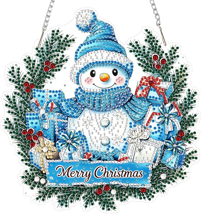 MEIYUDA Christmas Hanging Diamond Art Kits for Adult, Snowman Wreath Diamond Painting Hanging Kits Ornaments, DIY Special Shaped Rhinestone Window Pendants kit for Home Garden Wall Decor Gift