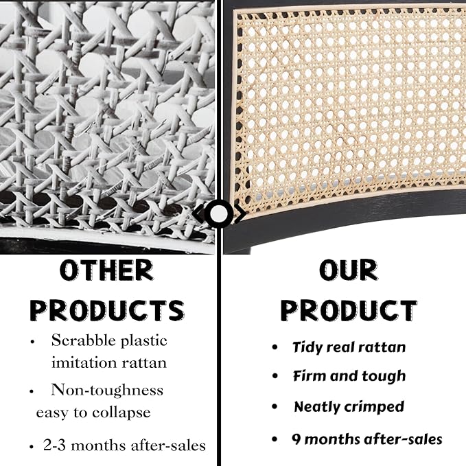 - Durable Handwoven Cane Back: Crafted from real bamboo, this black cane chair offers breathable, textured seating that outlasts plastic alternatives. Its natural weave develops a rich patina over time, adding organic warmth to dining rooms or breakfast nooks