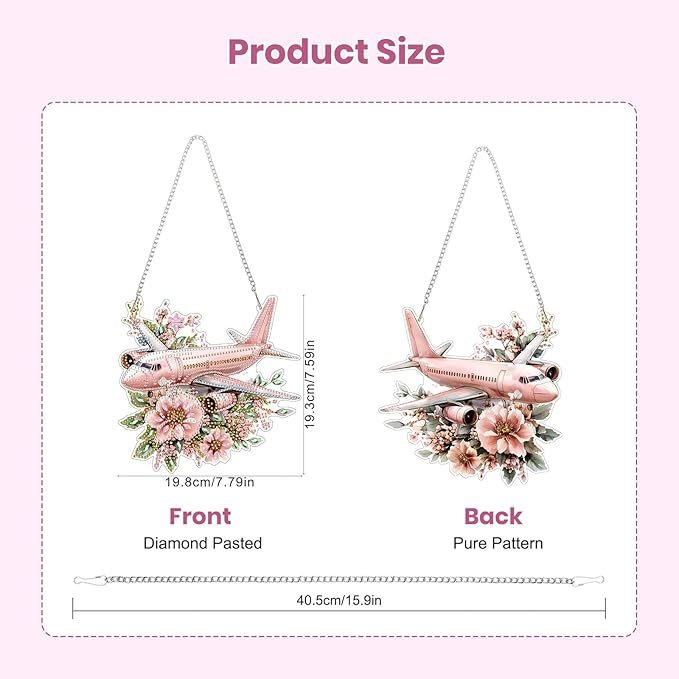 EOBROMD Diamond Hanging Art Kits for Adults, Diamond Art Painting Plane Flower Window Pendant Kits Suncatchers, DIY Special Shaped Rhinestone Adults, Home Wall Decor