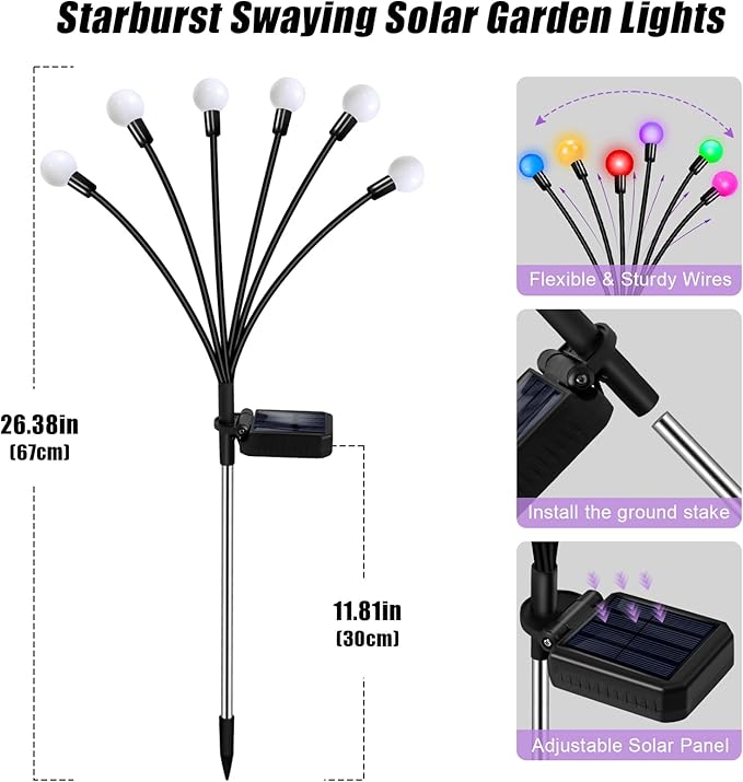 - 【VIBRANT GARDEN DECORATIONS】 Our swaying lights feature a bright warm white color that perfect for garden, patio, lawn, pathway and anywhere you want to place. It’ also an unique gardening gift for your family and friends on Mother’s Day, Thanksgiving, Christmas, Birthday, Anniversary, New Years and party occasions. It's never out of style