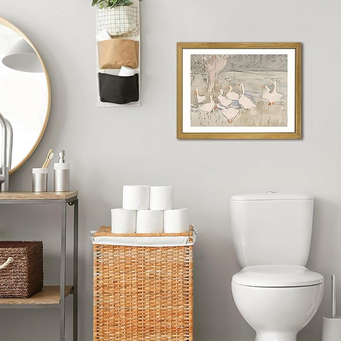 Vintage Framed Goose Wall Art Watercolor Print, Rustic Farm Duck Decor Canvas Painting, Minimalist Pastoral Poster Picture, Country Cottage Wall Decor for Living Room Kitchen Bathroom Bedroom 16x24 in