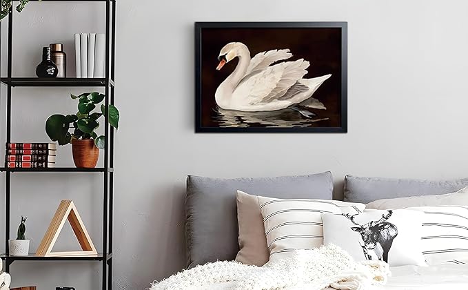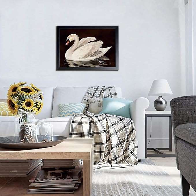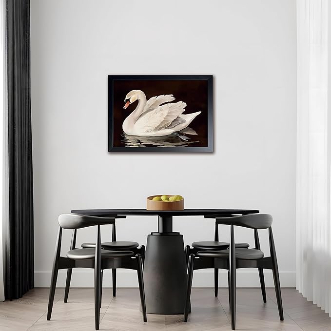 Black Wood Framed Wall Art Canvas Print Home Decor, Vintage Swan Aesthetic Wall Decor Photo, Classical Grace Swan Bathroom Prints Painting for Living Room Bedroom Office Decor 16x24 Inch