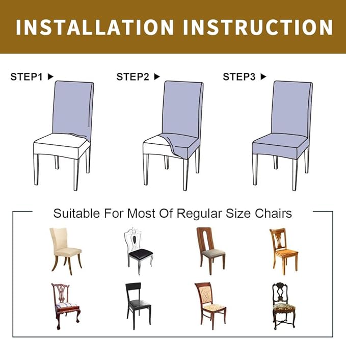 - [Very Suitable for Chair Size]: Backrest Height- 40-50 cm; Total Seat Length- 90cm. The length and width of the chair protector can be stretched 30-50cm, built-in elastic band, suitable for most seats. Package includes: 6pcs x dining chair covers.