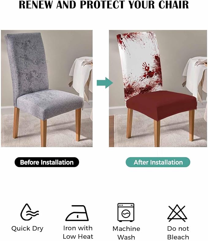 6 Pcs Dining Chair Covers Stretch Spandex Slipcovers Halloween Horror Bloody Handprint Removable Washable Dining Room Seat Cover Cushion Protector for Home Hotel Banquet Decor Red Blood White