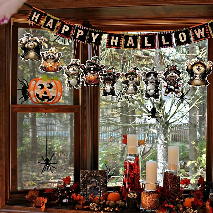 Halloween Tree Decoration,9 Pcs Funny Raccoon Acrylic Pendant, Terror Cartoon Animal Halloween Accessories, Funny Cartoon Christmas Tree Hanging Ornaments for Indoor Outdoo