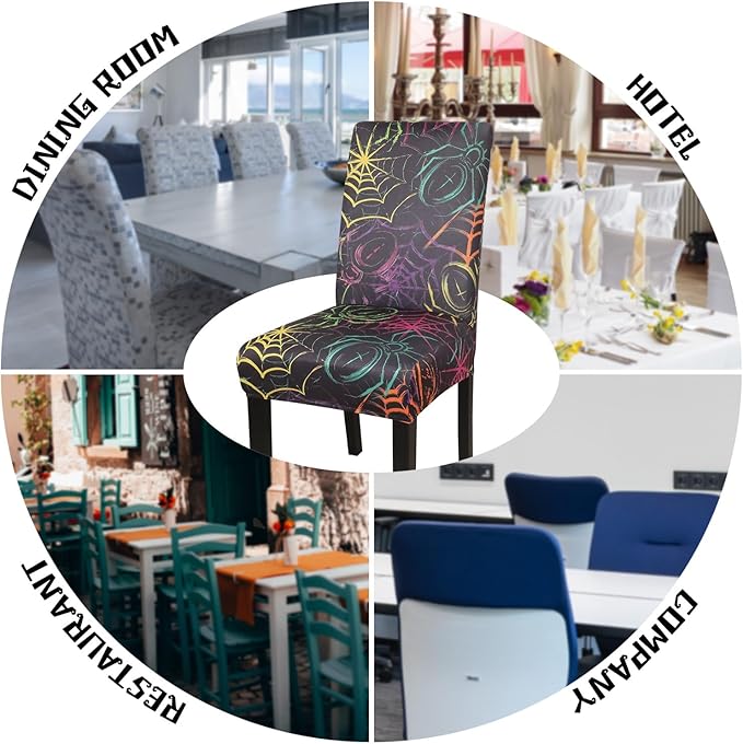 JQinHome Spider Halloween Chair Slipcover,Web Black Chair Covers Set of 4, High Stretch Washable Chair Protector Cover for Dining Room, Kitchen,Home Party,Wedding Ceremony(Spider,4PC)