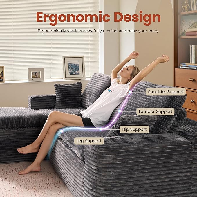• Comfy Chaise Couch:Bask in unparalleled luxury with our interchangeable sofa collection, which embodies a spacious, cloud-like seating sensation. Revel in supreme ease with our couch with 70" lounge chaise, meticulously crafted from high resilience foam architecture and coil spring reinforcement