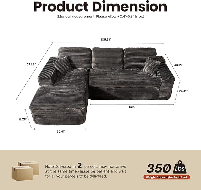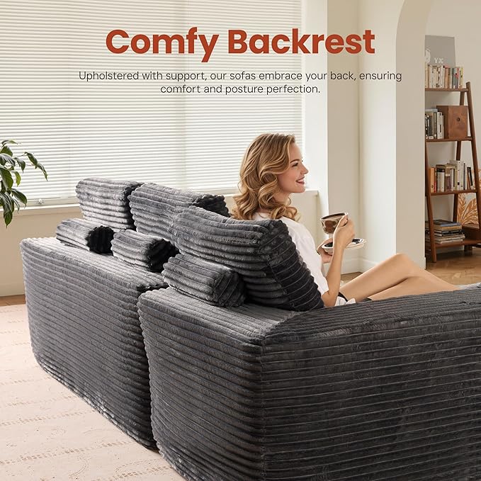 • No Assembly Required:Escape the typical furniture setup hassle with our modular cloud lounge. Simply unbox all parts and lightly tap each segment to boost its springiness and poof, bringing it back to its photogenic glory. Complete revival may take up to around 72 hours. Delight in the ease of a no-assembly nirvana!
