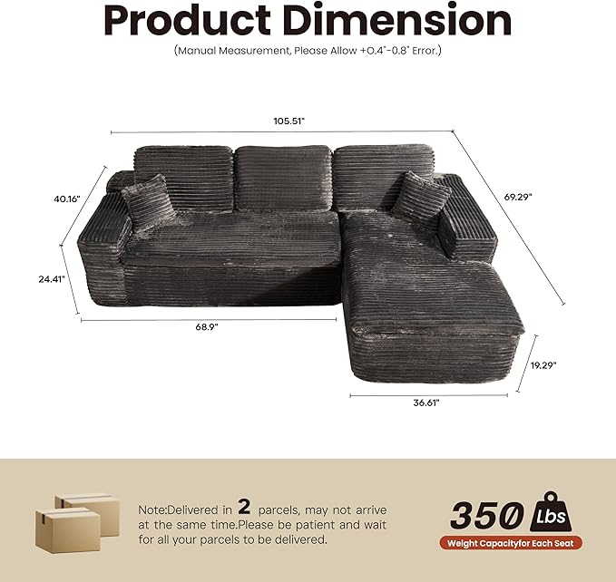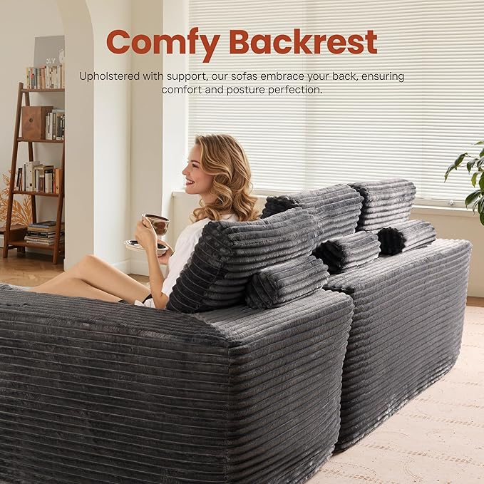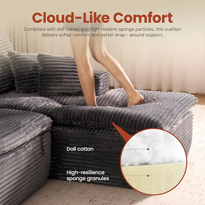 - No Assembly Required:Escape the typical furniture setup hassle with our modular cloud lounge. Simply unbox all parts and lightly tap each segment to boost its springiness and poof, bringing it back to its photogenic glory. Complete revival may take up to around 72 hours. Delight in the ease of a no-assembly nirvana!