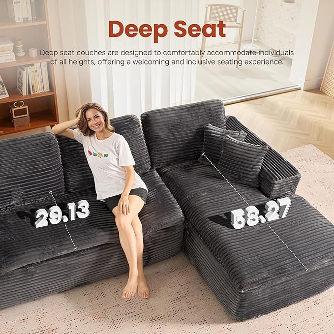 - Comfy Chaise Couch:Bask in unparalleled luxury with our interchangeable sofa collection, which embodies a spacious, cloud-like seating sensation. Revel in supreme ease with our couch with 70" lounge chaise, meticulously crafted from high resilience foam architecture and coil spring reinforcement
