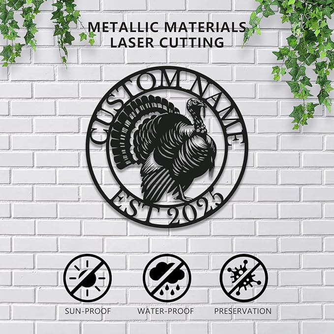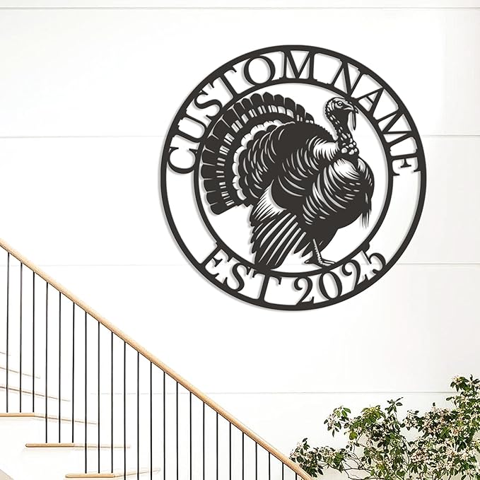 Personalized Turkey Metal Wall Art, Custom Hunting Cabin Sign, Wild Turkey Farmhouse Decor, Rustic Lodge Wall Hanging, Turkey Hunter Gift, Thanksgiving Home Decoration (Style-3)
