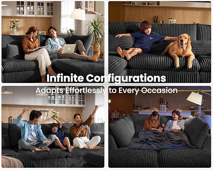 - 【Endlessly Modular for Tailored Space】Transform your space with ease using the fully modular design. Whether you need a cozy L-shape for movie nights, a U-shape or a spacious sleeper for entertaining, each piece reconfigures to fit your needs. This sectional adapts to any room, offering customizable comfort. Perfect for living rooms, home offices, or entertainment spaces, it provides flexibility without complicated tools. Enjoy seamless reconfiguration for relaxing, working, or entertaining