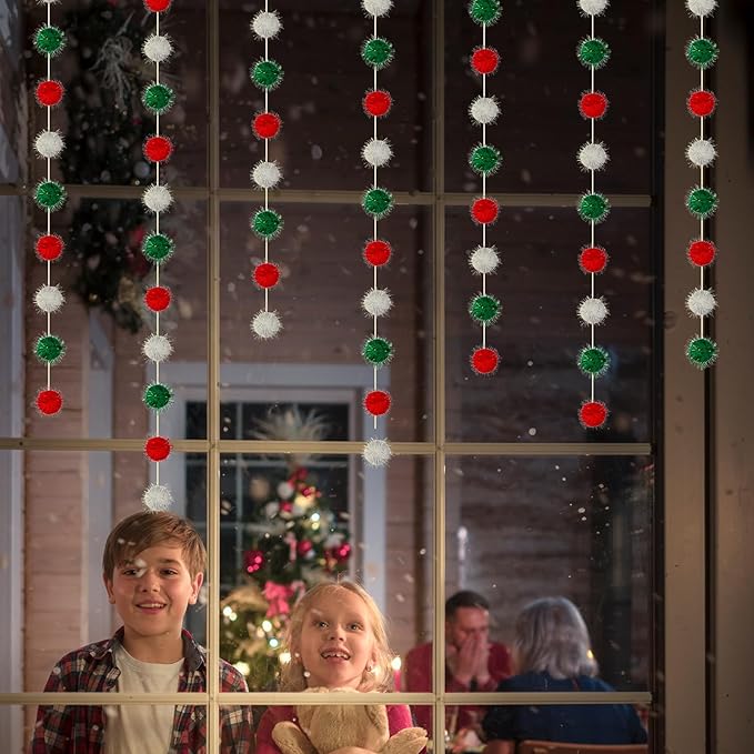 - Glitter Christmas Pom Pom Garland: Our Christmas ball garland is crafted from high-quality glittering balls in three classic Christmas colors, red, green, and white. The vibrant and sparkling colors will bring a unique touch to your Christmas