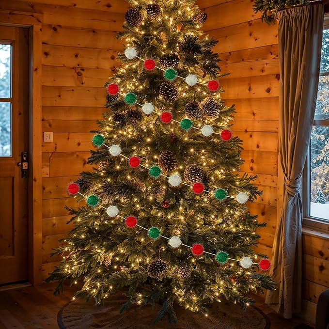 - Applicable Scenarios: This red, green and white pompom garland is colorful and dazzling, making it perfect for Christmas parties, festivals and other occasions. You can hang it on the wall, Christmas tree, fireplace, stair railings, etc. to create a strong festive atmosphere for your home. Our pompom garland will add brilliance to your Christmas tree, create a unique Christmas tree, and make your home more unique