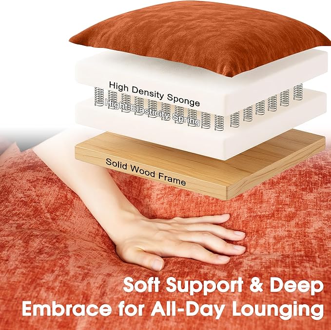- 【Durable, Soft, and Pet-Friendly Chenille Fabric】Crafted from premium chenille fabric, this sectional couch for living room is soft, comfortable, and highly durable with excellent color retention. The fabric matches the rounded cushions and armrests, with careful edges that add comfort and a warm look. Built with a sturdy metal frame and premium springs, combined with high-density foam padding, it delivers long-lasting comfort and reliable support—ideal for everyday use in pet-friendly homes.