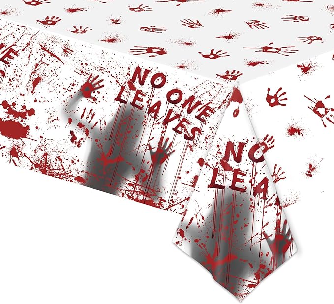 - 【Spooky Bloody Handprint Designs】Elevate your Halloween decor with our tablecloths, each boasting a mix of spine-tingling and charming motifs: Blood handprints, blood stains, terrifying portraits. These designs strike the perfect balance between spooky and festive, instantly transforming any space into a Halloween wonderland—ideal for parties, trick-or-treat setups, or family gatherings.