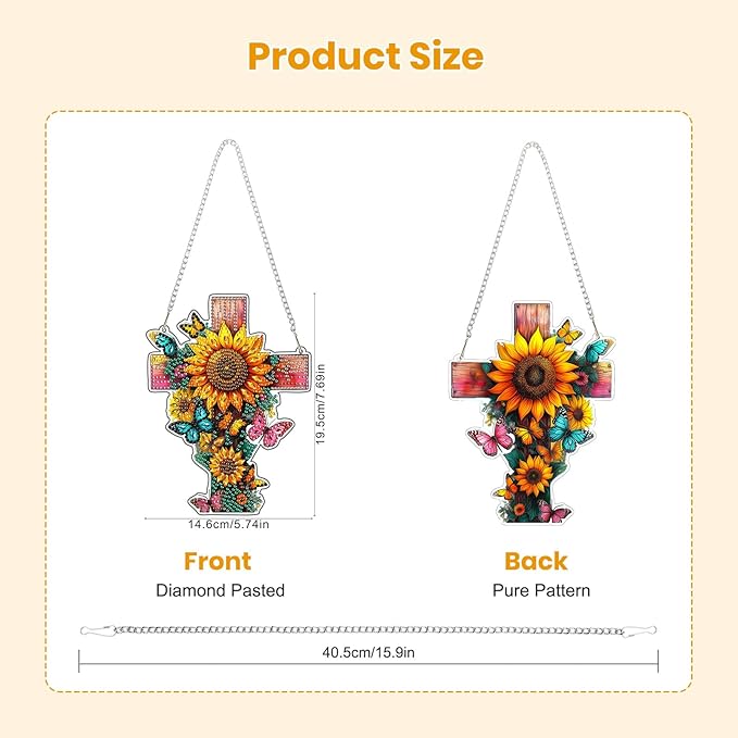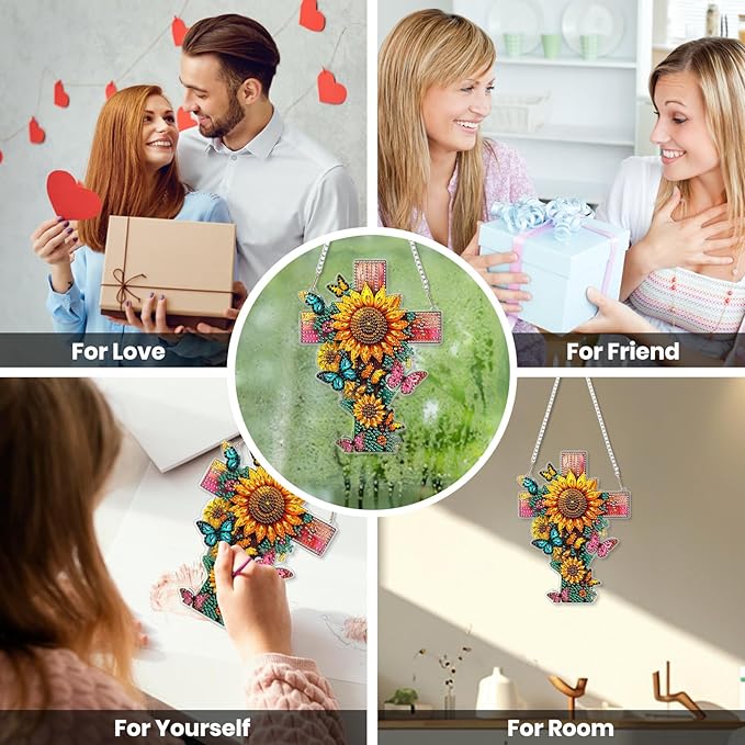 EOBROMD Diamond Hanging Art Kits for Adults, Cross Butterfly Suncatcher Diamond Art Painting, DIY Special Shaped Rhinestone Kits for Adults, Window Pendants Home Garden Wall Hanging Ornament
