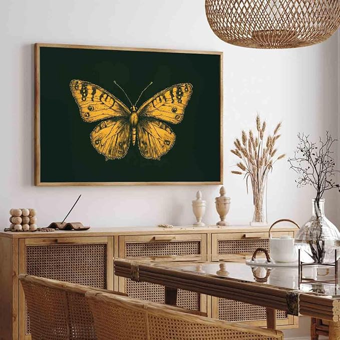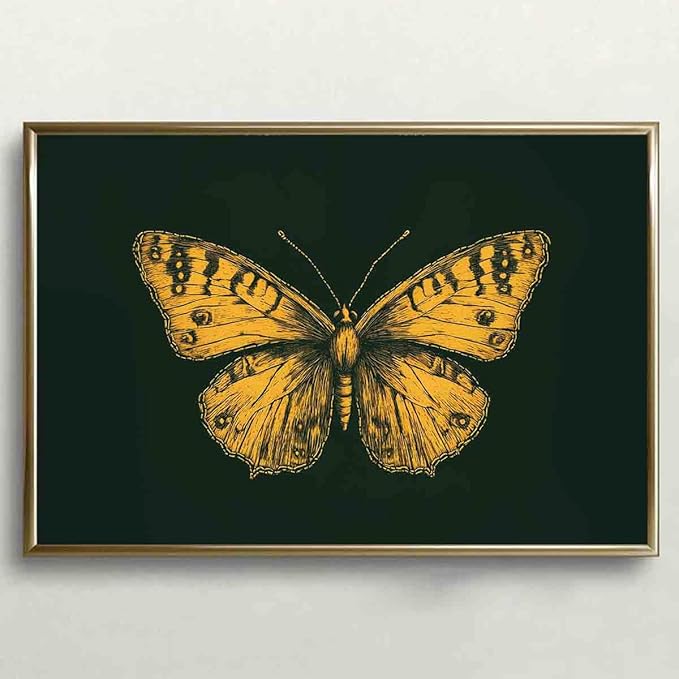 Gold Butterfly Paintings Green Gold Abstract Wall Art Moody Insect Artwork Vintage Butterfly Pictures Abstract Moody Animal Prints Wild Animals Painting Living Room Decor 16x24inch No Frame