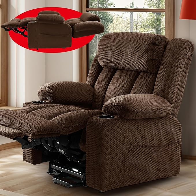 - Large Size for Big & Tall: Our power recliner chair suitable for big and tall 5'4”-6'1”, extended footrests to fully support your feet, prevent from dangling. The cushion 23"x24", providing ample space and comfort