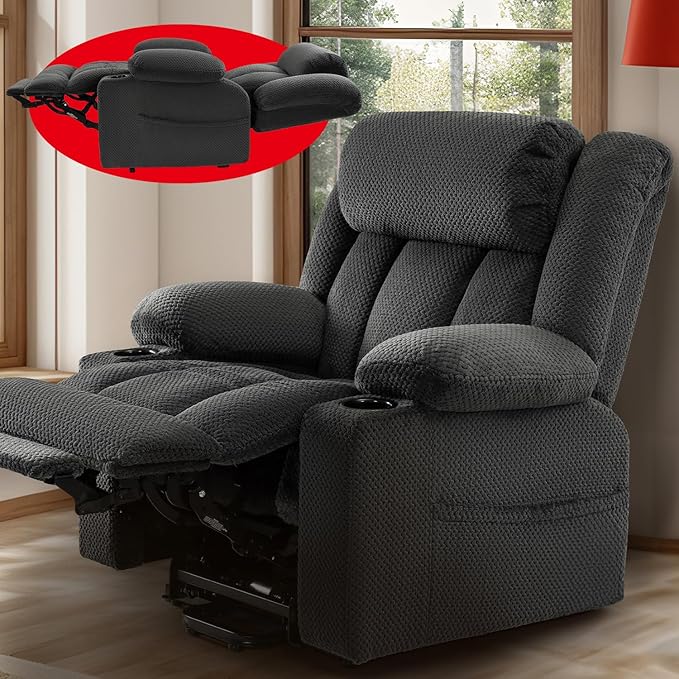 - Large Size for Big & Tall: Our power recliner chair suitable for big and tall 5'4”-6'1”, extended footrests to fully support your feet, prevent from dangling. The cushion 23"x24", providing ample space and comfort
