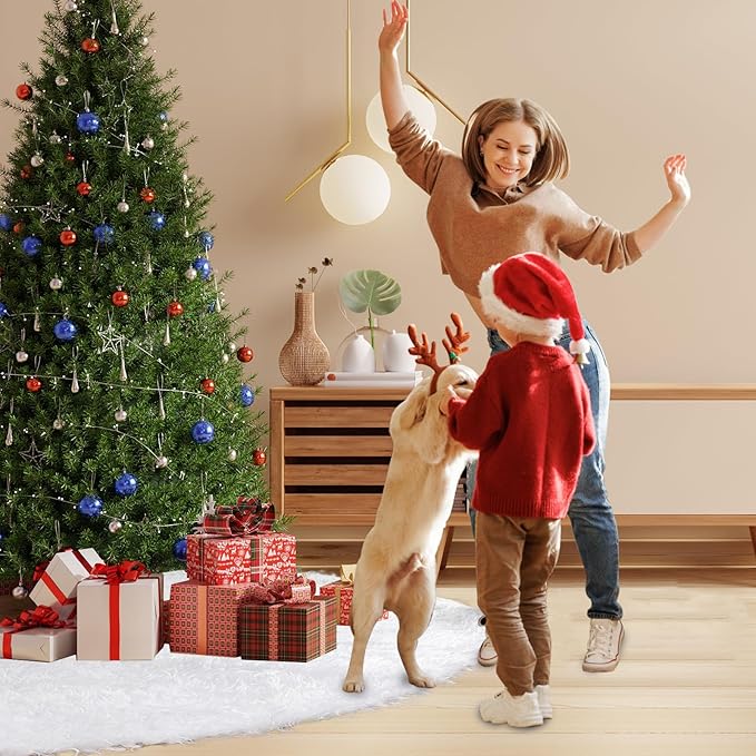 - Luxury Christmas Tree Skirt: This 48-inch diameter faux fur tree skirt designed for 7.5 ft to 9 ft Christmas trees. Its plush, warm, and soft texture will become your pet’s favorite spot while adding an essential wintery Christmas ambiance to your decor