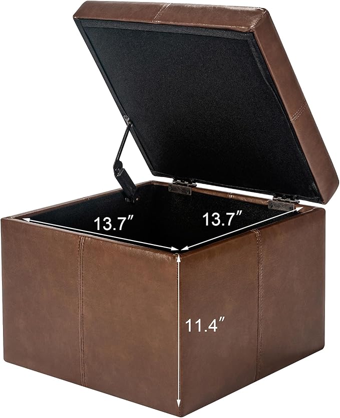 Adeco Storage Ottoman Foot Rest Stool, Leather Ottoman Footstool with Hinged Lid, 17" Small Foot Stool Bench for Living Room, Bedroom