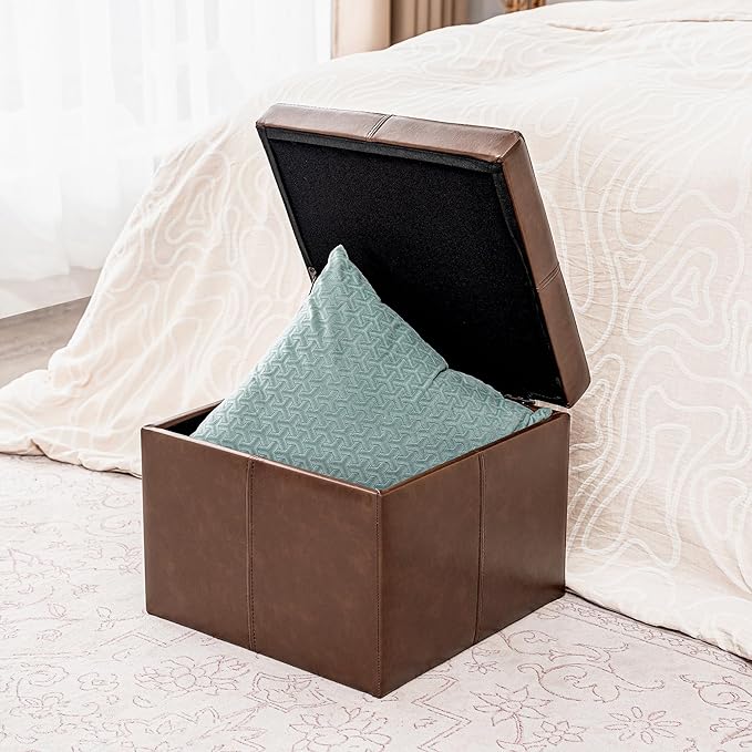 - PERFECT STORAGE OTTOMAN - Perfect square storage ottoman allows you to organize your small household items, store extra pillows, blankets and books in your bedroom or family room. Great height and width to complement a sitting chair, desk or the sofa couch, super comfortable with thick upholstery on the top, also great gift ideas for your family members or friends.