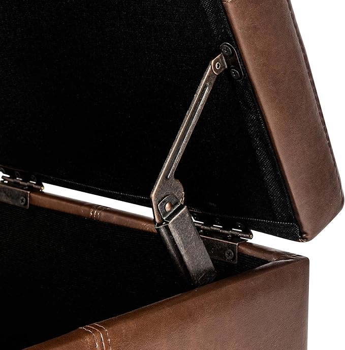 - SAFETY DESIGN: Constructed with a sturdy corner-blocked frame . Padded hinged lid stays open for safe access to storage space inside—great for your blanket and throw pillows.